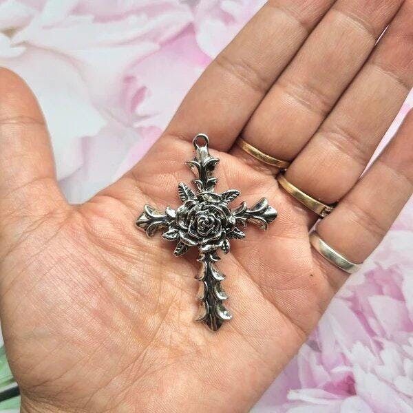 • The Rose-Heart Gothic Cross: A meticulously detailed silver-toned pendant featuring a blooming rose at its center. Its ornate, thorn-like edges evoke a sense of "dark romance" and timeless devotion.